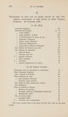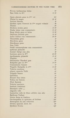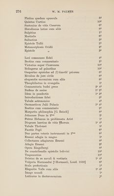 ![Platina quedam opuscula . 8d Quintus Curtius Oe Suetonius de vitis Cesarum Oo: Herodianus latine cum aliis . 84 Sulpitius ae Martialis 64 Sallustius 34 Epistole Tullii 9d Metamorphosis Ovidii 2d Epistole 3d Loci communes Eckii 4a Beotius cum commentario gd Victorius super Ciceronem 104 Bolingerus ad galanthas 104 Gasparino epistolas ad (?) timoth’ priorem 84 Rivalius de jure civile 84 eloquentie encomium cum aliis 8a Theophilactus in evangelia te Commentaria budei grece os 4a Budeus de assise 1 Idem in pandectis ! ; 18 28 Introductiones fabri gd Tabule astronomice 4a Onomasticon Julii Polucis 15 44 Boetius cum commentario | Peg Margarita philosophia [G. Reisch] 84 Johannes Duns in 2bus 28 Petrus Hebanus in problemata Arist i Diogenes laertius de vitis Phorum 1s 44 Tabule Tholomei 5s Facetie Pogii 64 Duo partes veteris instrumenti in 2>us 84 Erasmi adagia in magno 58 Collectanea adagiarum Erasmi 84 Adagia Erasmi 2d Opera Ringelbergi 84 De constribendis epistolis lodovici 10¢ Trapezontius ; 104 Doletus de re navali & vestiaria 18 4¢ Vulgaria Harmandui [?Hormanii, Lond. 1519] 64 Scala perfectionis 1 Elegantie Valle cum aliis 18 44 Imago mundi 18 Luthurus in deoteronomium J?](https://iiif.wellcomecollection.org/image/b28986179_0084.jp2/full/800%2C/0/default.jpg)