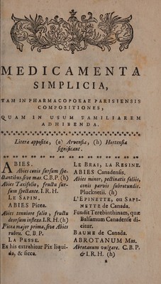 Credit: Codex medicamentarius seu pharmacopoea Parisiensis. Ex mandato Facultatis Medicinae Parisiensis in lucem edita. Decano / M. Joanne-Baptista Boyer. Source: Wellcome Collection.