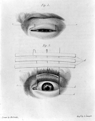 Credit: M0018194: Illustration showing the condition of entropium (inversion of the eye-lid), 1830. Source: Wellcome Collection.
