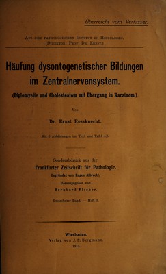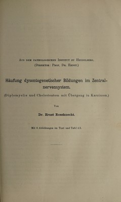 Häufung dysontogenetischer Bildungen im Zentralnervensystem : (Diplomyelie und Cholesteatom mir Übergang in Karzinom) / vorgelegt von Ernst Rossknecht.