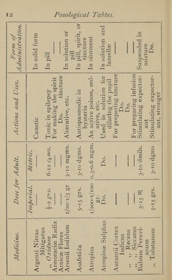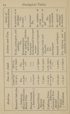 Credit: Posological tables : appendix on poisons, index of diseases, and medicines arranged according to their actions / by William Craig. Source: Wellcome Collection.