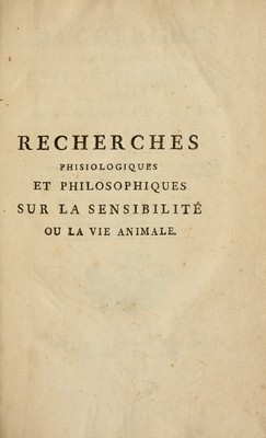 Recherches phisiologiques et philosophiques sur la sensabilitou la vie animal / par M. de Seze.