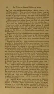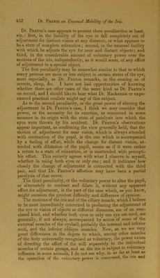 On unusual mobility of the iris, his own case / by John Paxton ... with remarks by Dr. Allen Thomson, in a letter to the editor. Further remarks on Dr. Paxton's case, with observations on the structure and action of the parts concerned in the focal adjustment of the eye / by Allen Thomson.