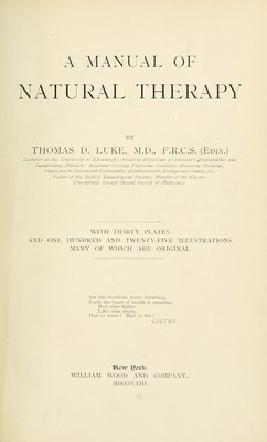 A manual of natural therapy / by Thomas D. Luke.