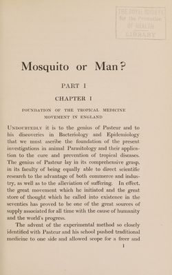 Mosquito or man? : the conquest of the tropical world / by Sir Rubert W. Boyce.