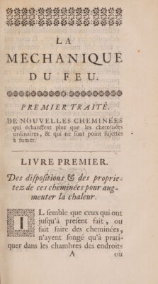 La mechanique du feu, ou l'art d'en augmenter les effets, & d'en diminuer la dépense. Contenant le traité de nouvelles cheminées, etc / Par Mr. G*** [i.e. N. Gauger].