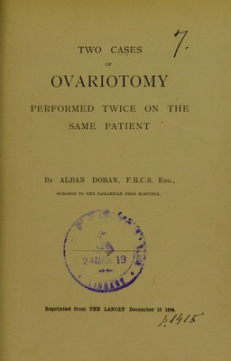 Credit: Two cases of ovariotomy performed twice on the same patient / by Alban Doran. Source: Wellcome Collection.