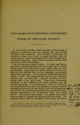 Two cases of ovariotomy performed twice on the same patient / by Alban Doran.
