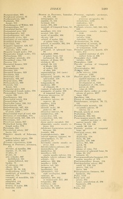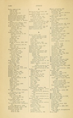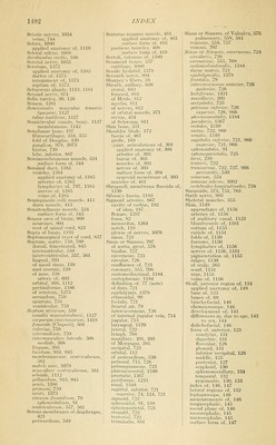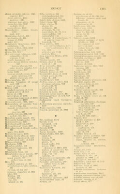 ![Sciatic nerves, 1054 veins, 744 Sclera, 1090 applied anatomy of, 1110 Scleral sulcus, lOSS Scrobiculus cordis, 166 Scrotal nerve, 1055 Scrotum, 1372 applied anatomy of, 1382 dartos of, 1373 integument of, 1373 septum of, 1373 Sebaceous glands, 1113, 1161 Second nerve, 974 Sella turcica, 90, 126 Semen, 1381 Semicanalis niiisculus iensoris tympani, 1127 tubae audiiivae, 1127 Semicircular canals, bony, 1137 membranous, 1142 Semilunar bone, 197 fibrocartilages, 334, 335 fold of Douglas, 430 ganglion, 978, 1073 hiatus, 730 lobe, inferior, 887 Semimembranosus muscle, 524 surface form of, 544 Seminal duct, 1383 vesicles, 1384 applied anatomy of, 1385 arteries of, 1385 lymphatics of, 797, 1385 nerves of, 1385 veins of, 1385 Semispinalis colli muscle, 413 dorsi muscle, 413 Semitendinous muscle, 524 surface form of, 543 Sensor area of l^rain, 960 neurones, 804 root of spinal cord, 823 Septa of lungs, 1195 Septomarginal tract of cord, 837 Septum, aortic, 759, 760 dorsal, fenestrated, 845 interauricular, 559 interventricular, 557, 561 lingual, 393 of nasal sinus, 139 nasi osseum, 139 of nose, 138 artery of, 602 orbital, 368, 1112 pectiniforme, 1386 of scrotum, 1373 secundimi, 759 spurium. 758 ventricular, 759 Septum atriorum, 559 canalis muscidotvbarii, 1127 corporum caveniosorum, 1418 femorale [Cloqucti], 504 inferius, 759 intermedium, 759 iniermusculare laterale, 508 mediale, 508 linguae, 393 lucidum, 934, 945 menibranaceum ventriculorum, 561 mobile nasi. 1079 musculare ventriculorum, 561 orbitale, 1112 pelluciduin, 913, 945 penis, 1386 prlmum, 759 scroti, 1373 sinuum frontalium, 79 sphenoidalium, 91 ventriculorum. 557, 561 Serous membranes of diaphragm, 421 pericardium, 549 Serratus magnus muscle, 461 applied anatomy of, 461 surface form of, 495 posticus muscles, 408 surface form of, 416 Sertoh, columns of, 1380 Sesamoid bones. 257 cartilage, lOSO Sessile hydatid, 1378 Seventh nerve, 994 Sharpey's fibers, 38 Sheath, axillary, 636 crural, 683 femoral, 683 of Henle, 812 myelin, 811 of nerves, 812 of orhiital muscle, 371 rectus, 434 of Schwann, 811 Sliin bone, 231 Shoulder blade, 172 fascia of, 461 girdle, 169 -joint, articulations of, 301 applied anatomy of, 304 arteries of, 303 bursae of, 303 muscles of, 303 nerves of, 303 surface form of, 304 synovial membrane of, 303 muscles of, 461 Shrapnell, membrana flaccida of, 1130 Sibson's fascia, 1183 Sigmoid arteries, 667 cavity of radius, 192 of ulna, 187 flexure, 1297 fossa, 82 mesocolon, 1264 notch, 118 plexus of nerves, 1076 sinus, 723 Sinus or Sinuses, 707 of aorta, great, 576 basilar, 727 cavernous, 723 circular, 726 confluence of, 723 coronary, 555, 708 costomediastinal, 1184 costophrenic, 1184 definition of, 77 (note) of dura, 721 epididymis, 1378 ethmoidal, 99 facialis, 721 frontal air, 79 intercavernous, 726 of internal jugular vein, 714 jugular, 713 laryngeal, 1170 lateral, 722 lymph, 768 maxillary, 101, 103 of Morgagni. 395 occipital, 723 orbital, 112 of pericardium, 550 petrosal, 715, 726 petrosquamous, 723 phrenicocostal, 1346 prostatic, 1367 pvriformis, 1233 renal, 1349 sagittal, inferior, 721 superior. 74, 124, 721 sigmoid. 723 sphenoidal. 91, 139 sphenoparietal, 725 straiglit, 722 tentorial. 722 terminaUs, 831 Sinus or Sinuses, of Valsalva, 576 pulmonary, 559, 561 venosus, 554, 757 venous, 707 Sinus or Sinuses, cavernosus, 724 circularis, 726 coronarius, 55.5, 708 cost07nediastinalis, 1184 durae m.atris, 721 epididymidis, 1378 frontalis, 79 intercavernosus anterior, 726 posterior, 726 lactiferans, 1431 maxillaris, 103 occipitalis, 723 petrosus inferior, 726 superior, 726, 966 phrenicocostalis, 1184 pocularis, 1367 rectales, 1310 rectus, 722, 966 renalis, 1349 sagittalis inferior, 721, 966 superior, 721, 966 sphenoidales, 91 spkenoparietalis, 725 tarsi, 239 tentorii, 722 transversus, 722, 727, 966 . pericardii, 550 venarum, 554 venosus sclerae, 1092 vcrtebrales longitttdinales, 738 Sinusoids, 573, 751, 763 Sixth nerve, 993 Skeletal muscles, 355 Skin, 1149 appendages of, 1156 arteries of, 1156 of auditory canal, 1123 bloodvessels of, 1161 coriimi of, 1153 cuticle of, 1151 folds of, 1150 furrows, 1150 lymphatics of, 1156 nerves of, 1156, 1161 pigmentation of, 1155 ridges, 1150 of scalp, 363 scarf, 1151 true, 1153 veins of, 1156 SkuU, anterior region of, 134 applied anatomy of, 149 base of, 123 bones of. 69 brachyfacial, 146 chemoprosope, 146 development of, 141 differences in, due to age, 143 to sex, 144 dolichofacial, 146 fossa of, anterior, 123 condylar, 131 digastric, 131 floccular, 128 glenoid, 131 inferior occipital, 128 middle, 125' posterior, 127 scaphoid, 130 sphenomaxillary, 134 temporal, 132 zygomatic, 130, 133 index of, 146, 147 lateral regions of, 132 leptoprosope, 146 measurements of, 146 megacephalic, 145 mesal plane of, 146 mesocephalic, 145 microcephalic, 145 surface form of, 147](https://iiif.wellcomecollection.org/image/b21220694_1488.jp2/full/800%2C/0/default.jpg)