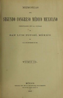 Memorias del segundo congreso médico mexicano verificado en la cuidad de San Luis Potosí, México del 5 al 8 de noviembre de 1894.