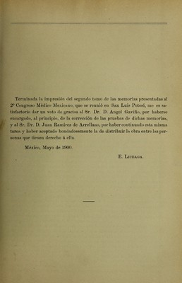 Credit: Memorias del segundo congreso médico mexicano verificado en la cuidad de San Luis Potosí, México del 5 al 8 de noviembre de 1894. Source: Wellcome Collection.
