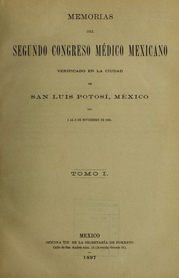 Memorias del segundo congreso médico mexicano verificado en la cuidad de San Luis Potosí, México del 5 al 8 de noviembre de 1894.
