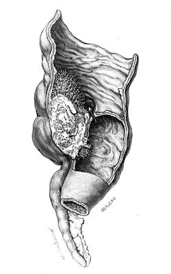 Credit: M0019678: Illustration of a caecum with vermiform appendix and terminal portion of the ileum, 1922. Source: Wellcome Collection.