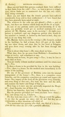Credit: Report, together with the minutes of evidence, and an appendix of papers, from the committee : appointed to consider of provision being made for the better regulation of madhouses in England (ordered by the House of Commons, to be printed, 11th July, 1815) : each subject of evidence arranged under its distinct head / by J.B. Sharpe. Source: Wellcome Collection.